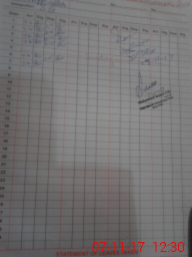 | CNIC | Full Name | Designation | R/C | Absence During Last Calender Month |