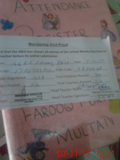 | Attendance Register | Head Teacher | MEA with School | Visit Proof |