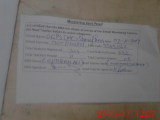 | EMIS Code: 35431162 | Name of School: GGPS MC SHARIF PURA | |||