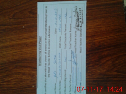 | Attendance Register | Head Teacher | MEA with School | Visit Proof |