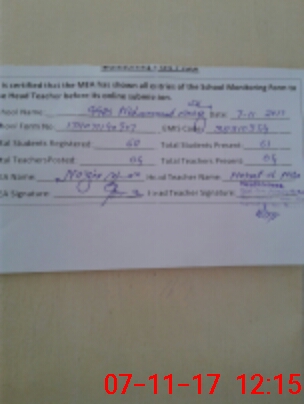 | Monitoring Date: 07-11-2017 | Start Time: 07-11-2017 11:32 AM | End Time: 07-11-2017 12:15 PM | Name of MEA: Na**** Kh**** (R**** | |