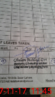 | CNIC | Full Name | Designation | R/C | Absence During Last Calender Month |