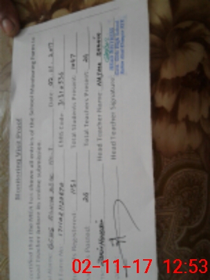 | Attendance Register | Head Teacher | MEA with School | Visit Proof |