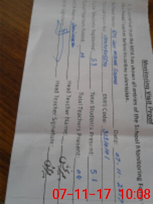 | Attendance Register | Head Teacher | MEA with School | Visit Proof |
