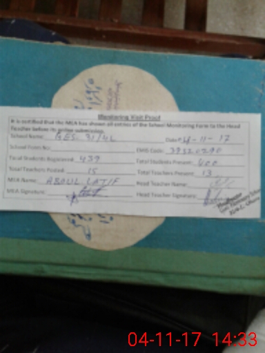| Attendance Register | Head Teacher | MEA with School | Visit Proof |