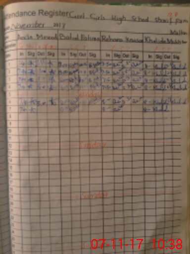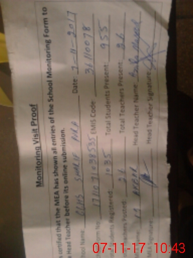 | Attendance Register | Head Teacher | MEA with School | Visit Proof |