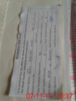 | Attendance Register | Head Teacher | MEA with School | Visit Proof |