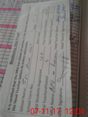 | Attendance Register | Head Teacher | MEA with School | Visit Proof |