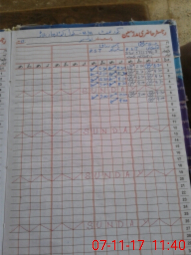 | CNIC | Full Name | Designation | R/C | Absence During Last Calender Month |