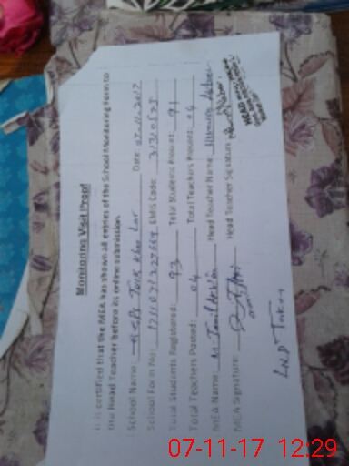| Attendance Register | Head Teacher | MEA with School | Visit Proof |