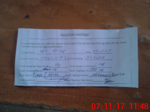 | Attendance Register | Head Teacher | MEA with School | Visit Proof |