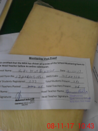 | Attendance Register | Head Teacher | MEA with School | Visit Proof |