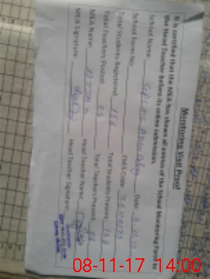 | Attendance Register | Head Teacher | MEA with School | Visit Proof |