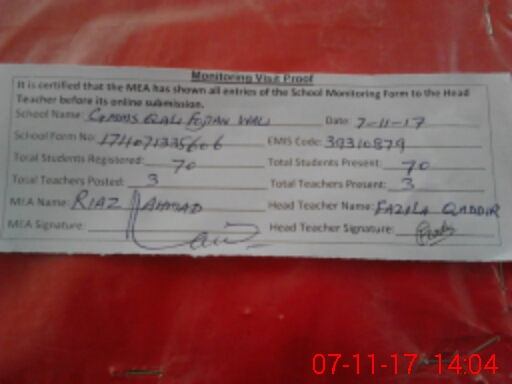 | EMIS Code: 39310879 | Name of School: GPS QALI FOJIAN WALI | |||