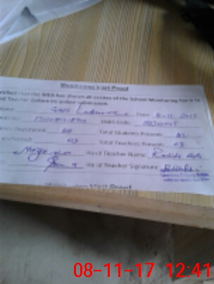| Attendance Register | Head Teacher | MEA with School | Visit Proof |