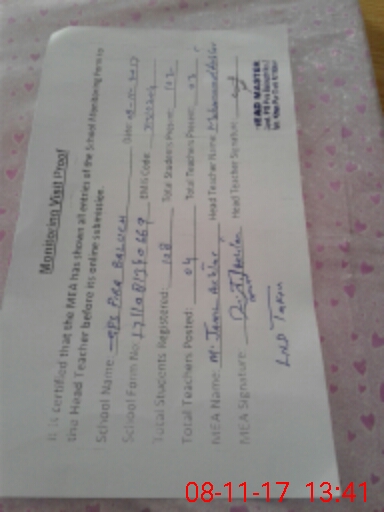 | Attendance Register | Head Teacher | MEA with School | Visit Proof |