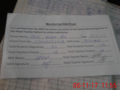 | Attendance Register | Head Teacher | MEA with School | Visit Proof |