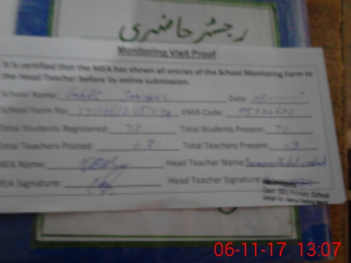 | EMIS Code: 35420636 | Name of School: GGPS JAMGILL | |||