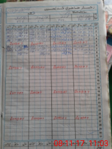 | CNIC | Full Name | Designation | R/C | Absence During Last Calender Month |