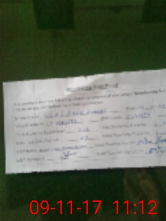 | Monitoring Date: 09-11-2017 | Start Time: 09-11-2017 10:29 AM | End Time: 09-11-2017 11:14 AM | Name of MEA: Mu**** Ak**** | |