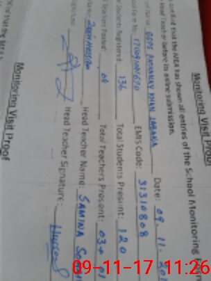 | Attendance Register | Head Teacher | MEA with School | Visit Proof |