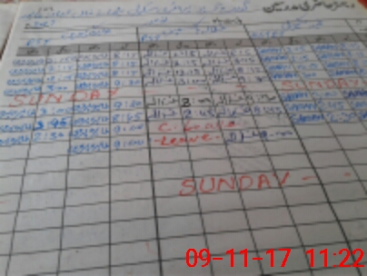 | CNIC | Full Name | Designation | R/C | Absence During Last Calender Month |