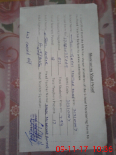 | Attendance Register | Head Teacher | MEA with School | Visit Proof |