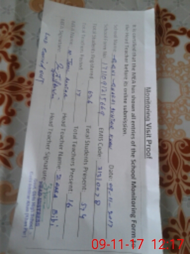 | Attendance Register | Head Teacher | MEA with School | Visit Proof |