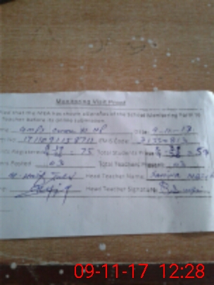 | Attendance Register | Head Teacher | MEA with School | Visit Proof |