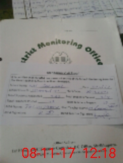 | Monitoring Date: 08-11-2017 | Start Time: 08-11-2017 11:56 AM | End Time: 08-11-2017 12:24 PM | Name of MEA: Ta**** Hu**** | |