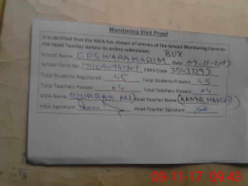 | EMIS Code: 35431297 | Name of School: GPS WARA KARIM BUX | |||