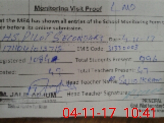 | Attendance Register | Head Teacher | MEA with School | Visit Proof |
