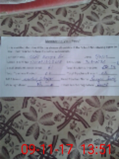 | Monitoring Date: 09-11-2017 | Start Time: 09-11-2017 01:24 PM | End Time: 09-11-2017 02:08 PM | Name of MEA: Ab**** Gh**** | |