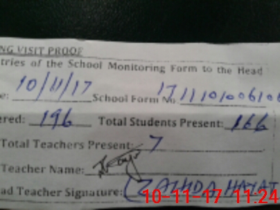 | Attendance Register | Head Teacher | MEA with School | Visit Proof |