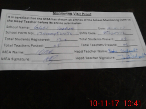 | Certified that this School was Inspected by the Undersigned MEA/DMO Today and the Information Stated Above is as Per Record. | |||||
