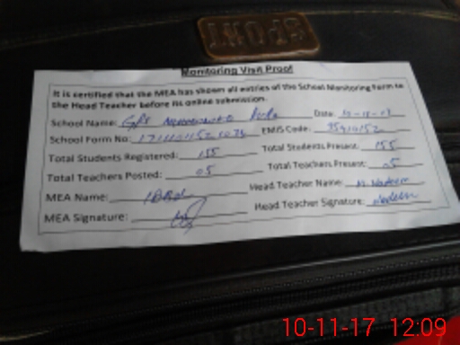 | Certified that this School was Inspected by the Undersigned MEA/DMO Today and the Information Stated Above is as Per Record. | |||||