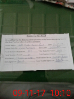 | Monitoring Date: 09-11-2017 | Start Time: 09-11-2017 09:34 AM | End Time: 09-11-2017 10:12 AM | Name of MEA: Mu**** Iz**** UlHa**** | |