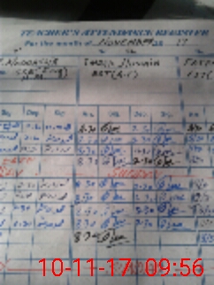 | CNIC | Full Name | Designation | R/C | Absence During Last Calender Month |