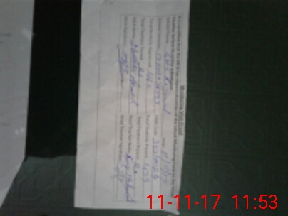| Monitoring Date: 11-11-2017 | Start Time: 11-11-2017 10:30 AM | End Time: 11-11-2017 11:55 AM | Name of MEA: MU**** AH**** (R**** | |
