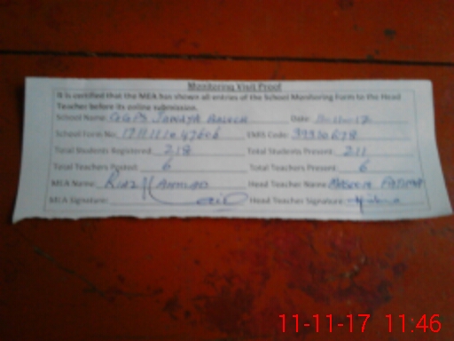 | EMIS Code: 39310678 | Name of School: GGPS JAWAYA BALOCH | |||