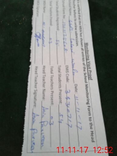 | Attendance Register | Head Teacher | MEA with School | Visit Proof |
