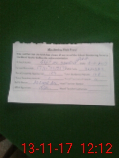 | Monitoring Date: 13-11-2017 | Start Time: 13-11-2017 12:07 PM | End Time: 13-11-2017 12:13 PM | Name of MEA: AS**** AL**** | |