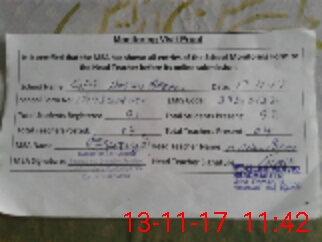 | Monitoring Date: 13-11-2017 | Start Time: 13-11-2017 10:50 AM | End Time: 13-11-2017 11:42 AM | Name of MEA: Ha**** Ul**** Ur**** Ba**** Al**** | |