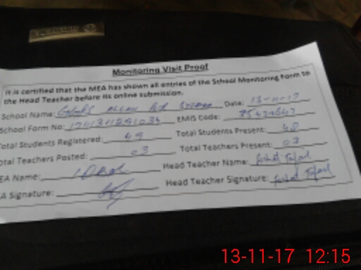 | Attendance Register | Head Teacher | MEA with School | Visit Proof |