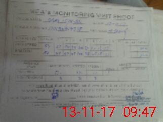 | Monitoring Date: 13-11-2017 | Start Time: 13-11-2017 09:11 AM | End Time: 13-11-2017 09:48 AM | Name of MEA: MU**** SH**** | |