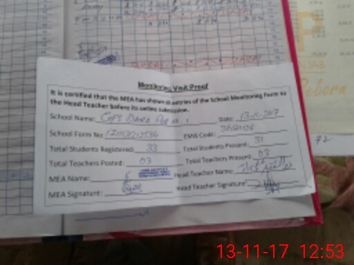 | Attendance Register | Head Teacher | MEA with School | Visit Proof |