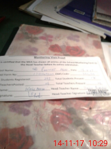 | Attendance Register | Head Teacher | MEA with School | Visit Proof |