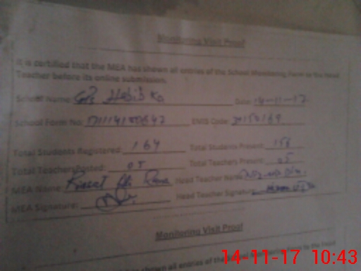 | Attendance Register | Head Teacher | MEA with School | Visit Proof |