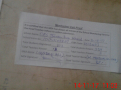 | Attendance Register | Head Teacher | MEA with School | Visit Proof |