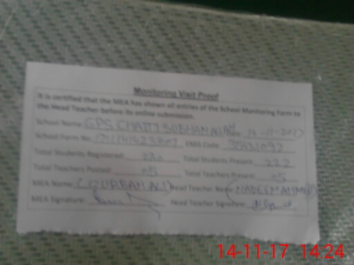 | EMIS Code: 35431092 | Name of School: GPS CHATTI (DERA SUBHAN ALLAH) | |||